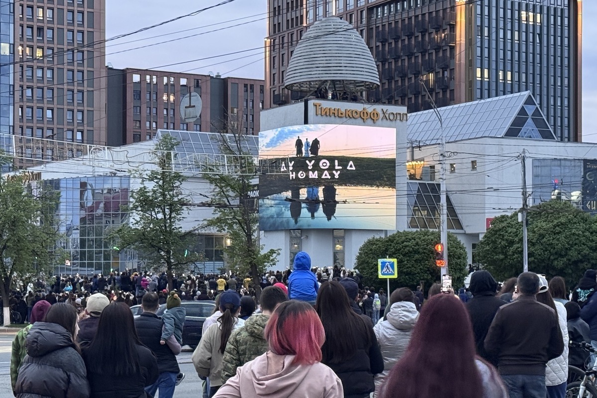 Премьера транслировалась на рекламном видеоэкране в центре Уфы