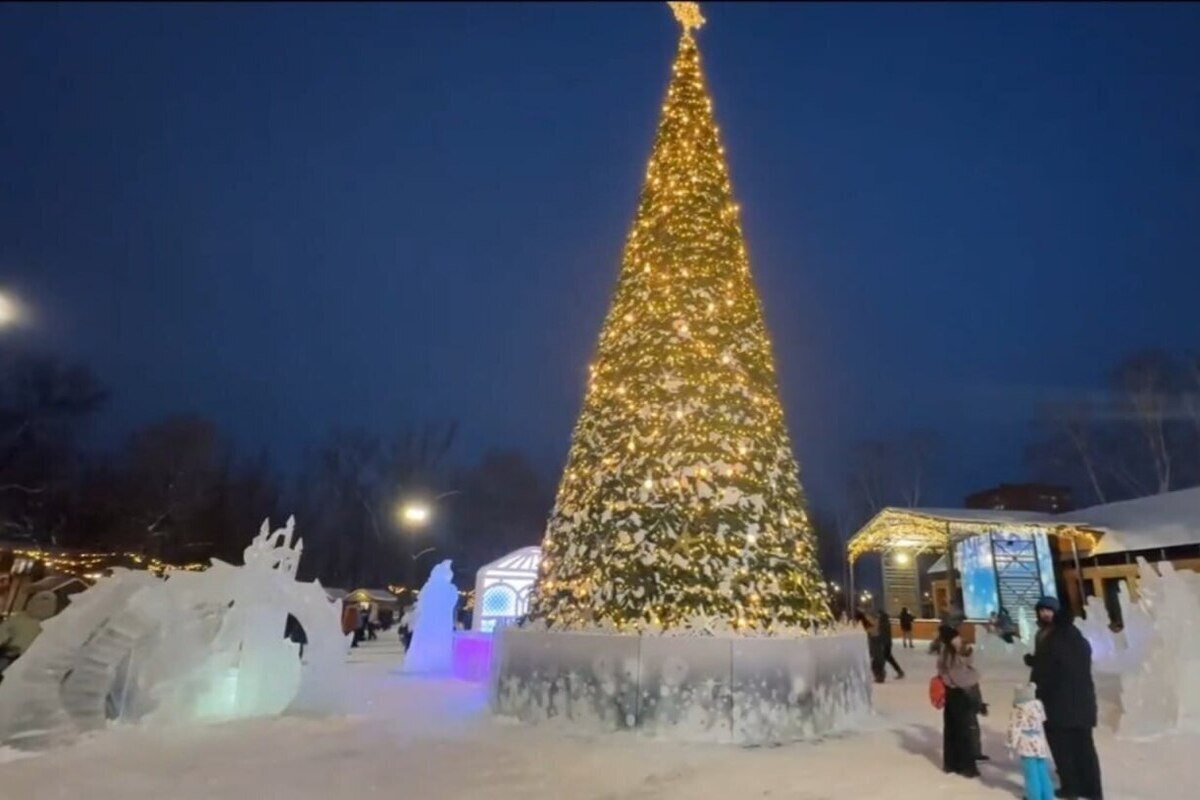 Во время открытия центрального районного новогоднего городка торжественно зажгли огоньки на ëлке.