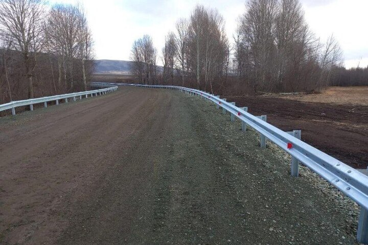 Дорожные рабочие установили на дороге шесть металлических труб, земляное полотно, подстилающий слой и покрытие из щебёночно-песчаной смеси. Также они смонтировали барьерное ограждение и установили новые дорожные знаки.