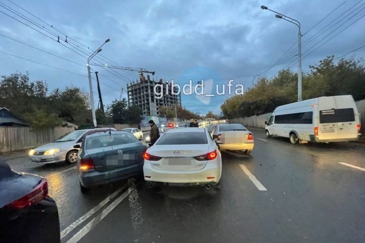 Как сообщили в ГИБДД Уфы, сначала автоледи врезалась во встречный «Фольксваген Поло». От удара последний автомобиль столкнулся с «Шкодой Октавией» и «Маздой 6».