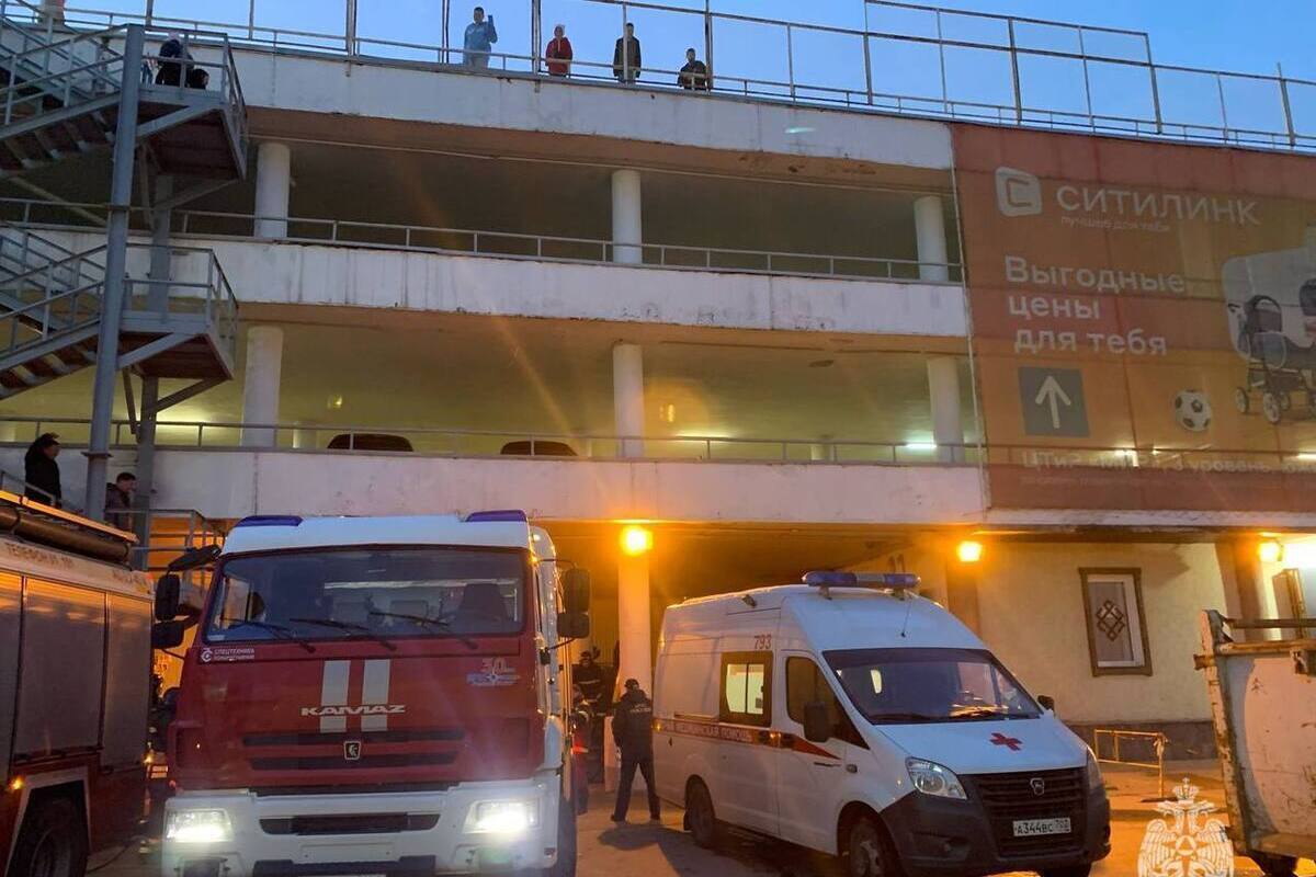 Из здания торгового центра эвакуировали посетителей и сотрудников. Огонь на площади один квадратный метр в бытовом помещении на парковке потушили.