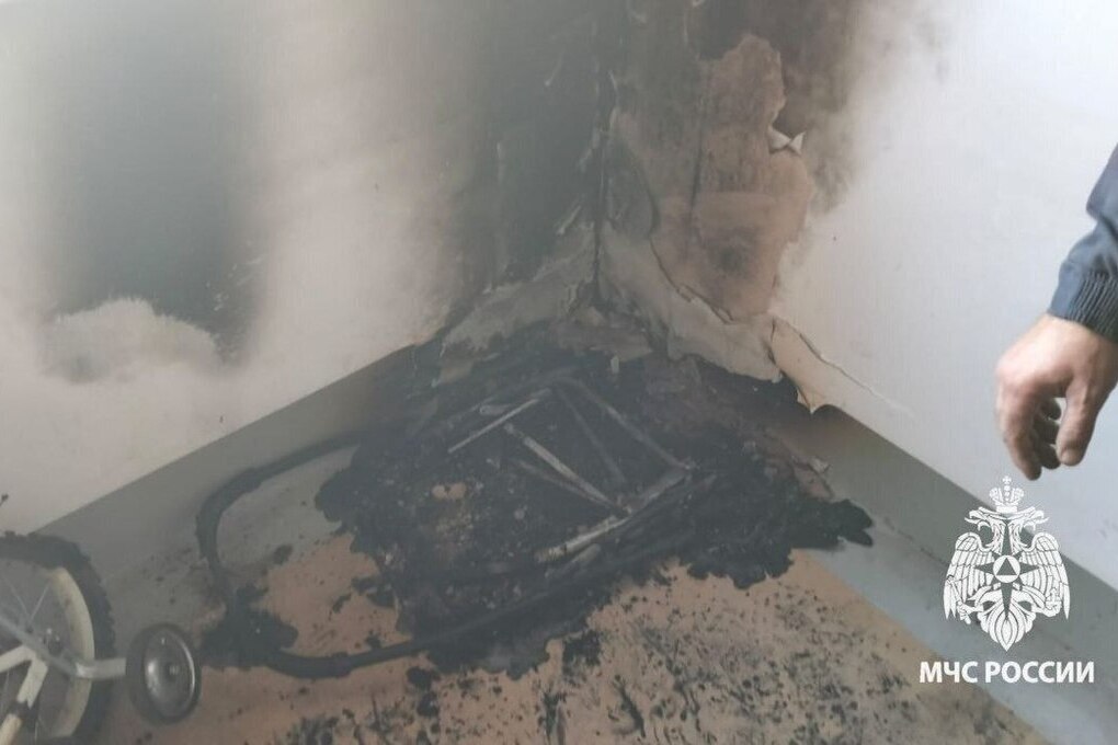 В Башкирии пожарные потушили полыхающую детскую коляску в подъезде