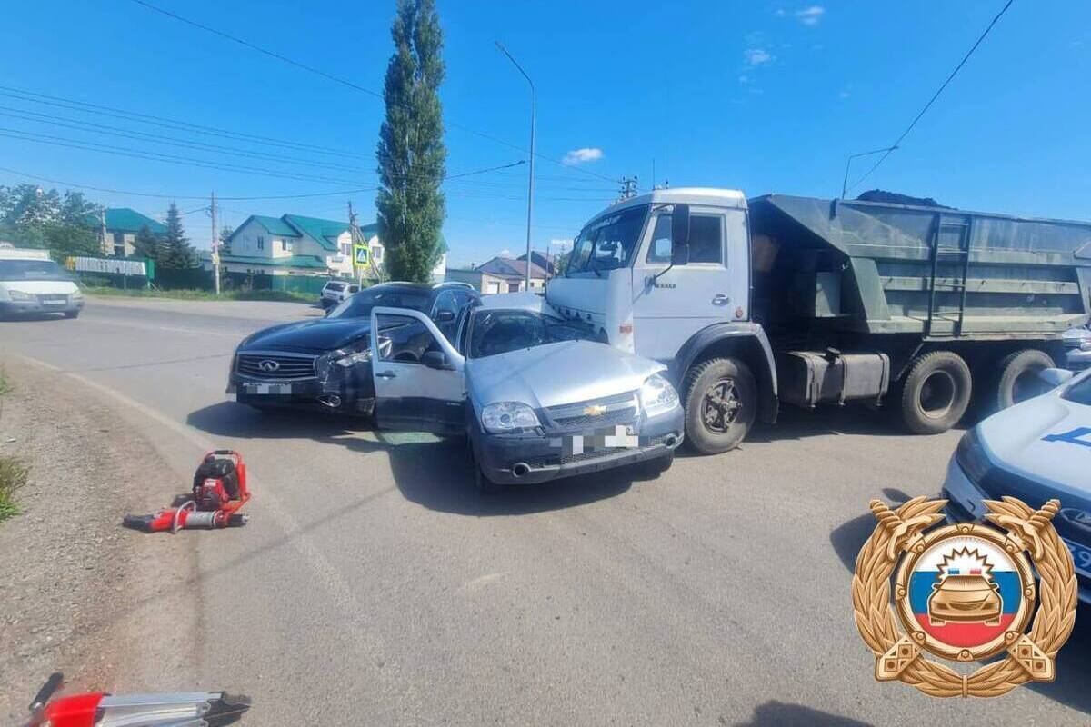 78-летний водитель «Шевроле Нивы» на регулируемом перекрестке неравнозначных дорог врезался в грузовой «КамАЗ». Водитель большегруза от удара по касательной задел «Инфинити».