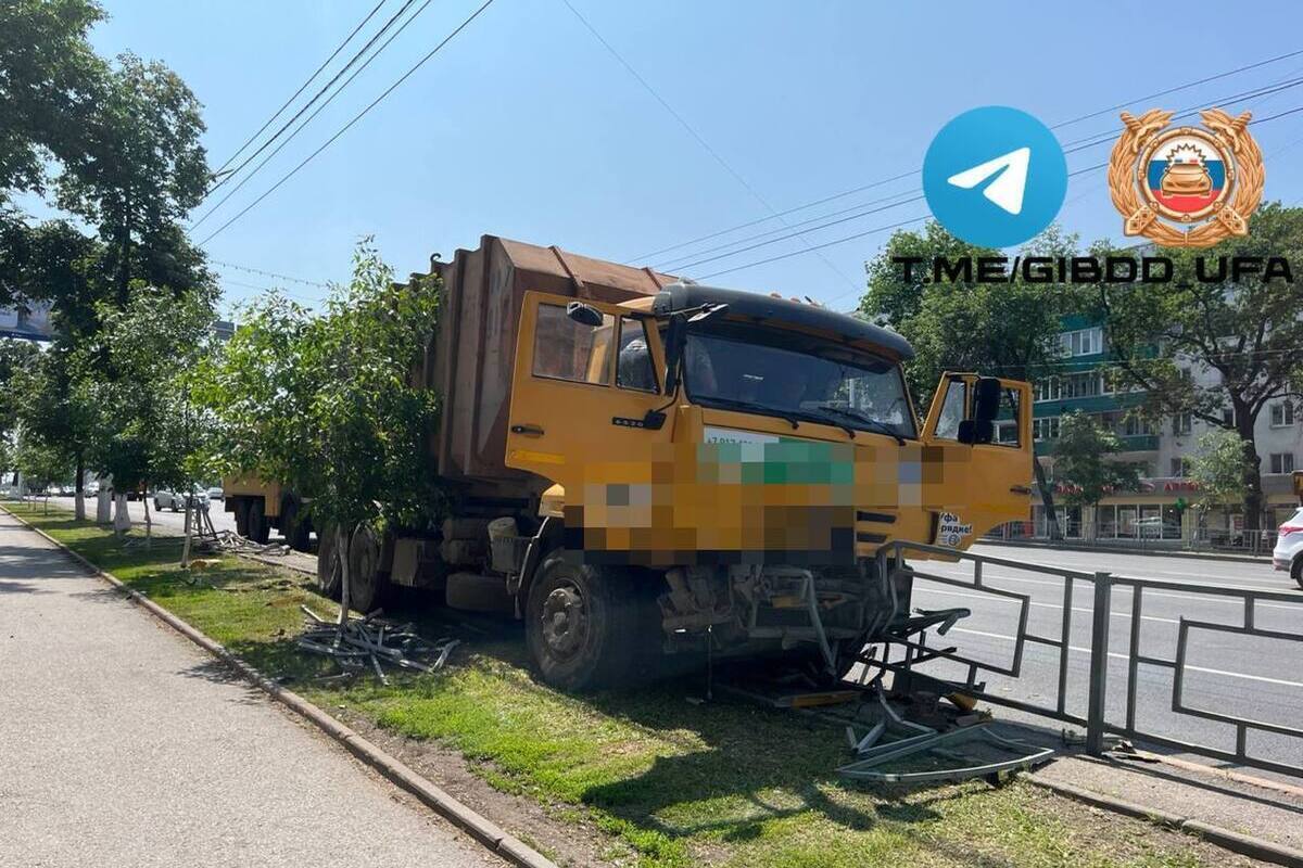 Сегодня, 7 июня, на проспекте Октября в районе Городского дворца культуры КамАЗ врезался в металлическое ограждение.
