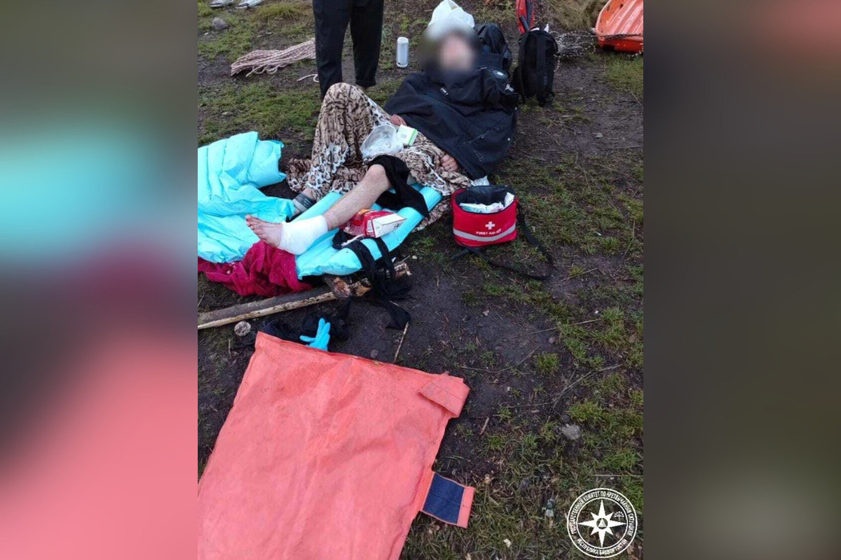 Две девушки и трое мужчин прибыли в труднодоступное красивое место и разбили стоянку. Однако один из туристов во время работы топором случайно поранил ногу. Остановить кровотечение самостоятельно они не смогли и вызвали спасателей.
