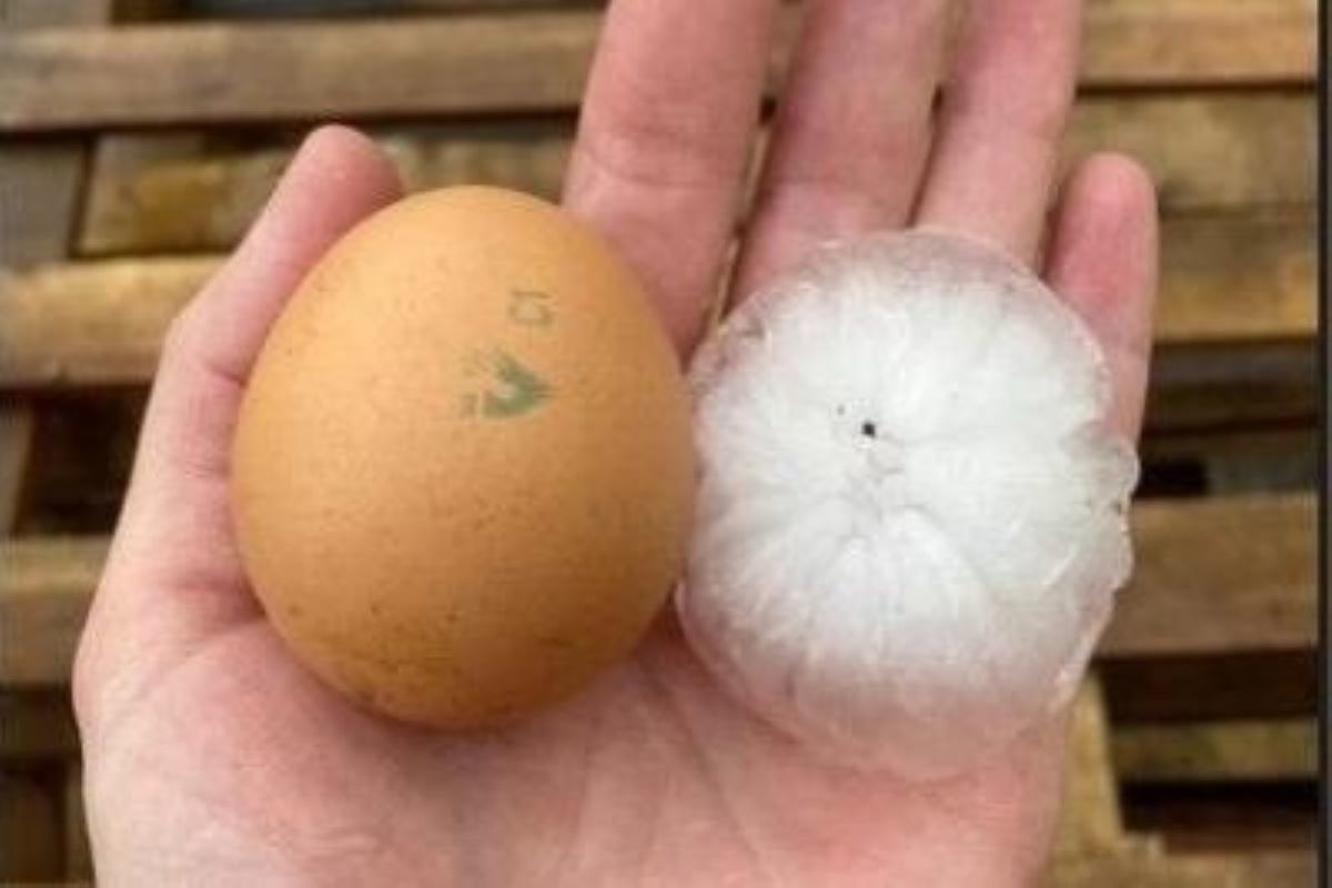 Некоторые градины оказались размером с куриное яйцо, и местные жители выложили фото и видео в соцсети.