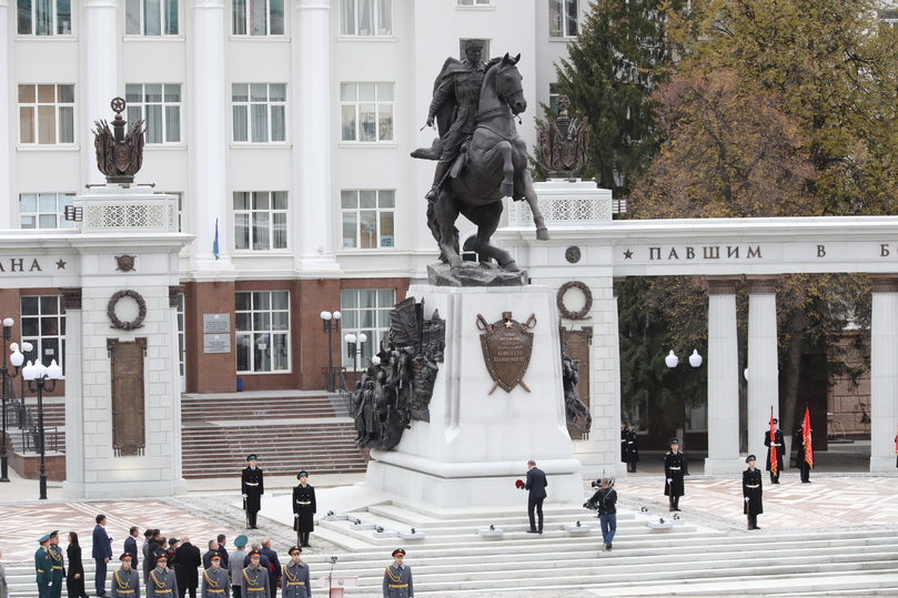 Глава Башкирии рассказал, что в основании памятника – земля с места гибели комдива, «которую мы, как драгоценность, бережно, на руках доставили на родину».