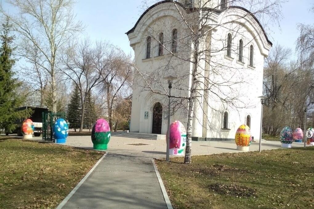 В Уфе перед городским храмом в сквере 50-летия Победы в преддверии праздник Пасхи установили экспозицию из восьми гигантских яиц. Необычный арт-объект появился благодаря стараниям горожан. Каждое и них расписали вручную. Эти скульптуры уже полюбились уфимцам.