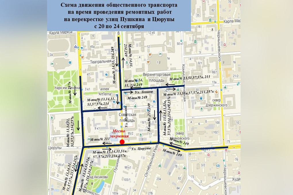 Как сообщает уфимская мэрия, речь идет об участке на пересечении улиц Пушкина и Цурюпы. Проезд здесь будет закрыт до 23:59 24 сентября. Ограничение связано с проведением земляных работ. На несколько дней движение общественного транспорта на данном участке изменится.