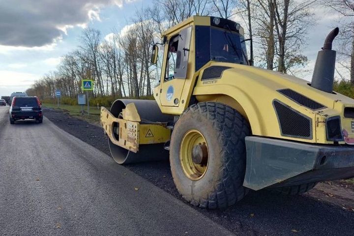 Специалисты выполнили фрезерование, уложили выравнивающий слой и покрытие на участке в два километра в районе деревни Старошареево. Сейчас идет работа по укреплению обочин, после чего начнется нанесение разметки.