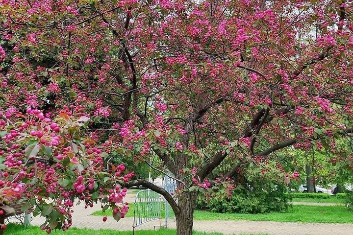 В начале мая в парке имени Ленина (бывший Александра Матросова) в Уфе начала цвести яблоня с розовыми цветами, которую горожане назвали «башкирской сакурой».