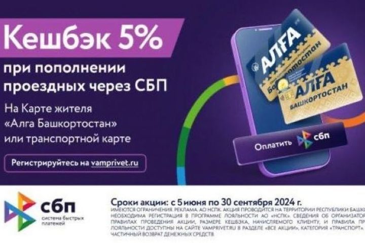 В мобильном приложении «Алга» для жителей Башкирии появилась возможность пополнить транспортную карту через систему быстрых платежей и с 5 июня по 30 сентября получить кешбэк.