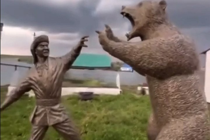 Житель Салаватского района Фларис Нуреев смастерил из дерева скульптуру национального башкирского героя Салавата Юлаева, который сражается с медведем. Видео появилось в соцсетях.