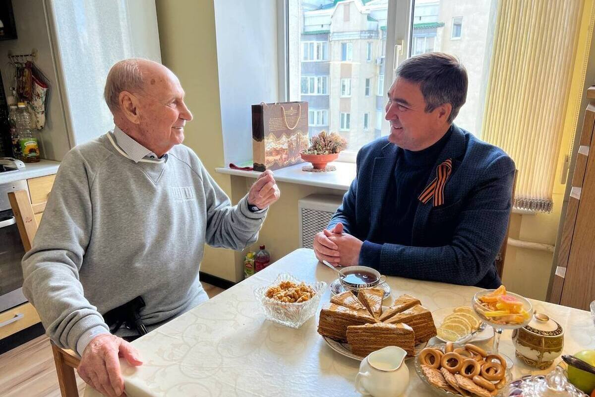 Глава администрации рассказал, что Петр Михайлович загадал три желания: посетить парад Победы в Москве, встретить 80-летие Победы и отпраздновать свое 100-летие.