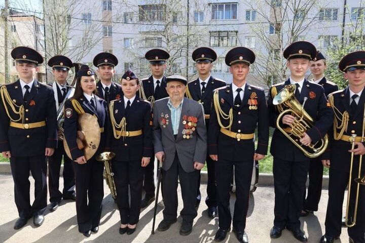 Для ветерана спели военные песни, под сопровождение оркестра под окнами его квартиры прошел парадный марш. Участие в нем приняли парадные расчеты отряда спецназначения Росгвардии имени Минигали Шаймуратова и уфимские кадеты.