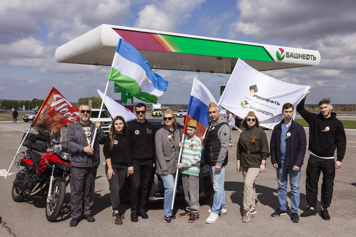 Встреча автоколонн патриотического автопробега прошла на АЗС «Башнефти». На заправочной станции в Уфимском районе у поселка Булгаково для участников организовали праздничную программу с выступлениями артистов – победителей корпоративного конкурса «Энергия жизни», которые исполнили песни военных лет.