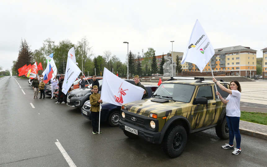 В памятном заезде приняли участие более сотни человек. Водители и пассажиры на пятидесяти автомобилях со знаменами Победы, флагами России, Башкирии и символикой своего предприятия преодолели 160 километров, стартовав из двух городов трудовой доблести – Ишимбая и Уфы.