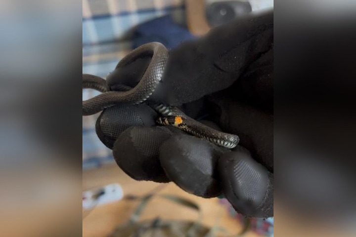 Во время отдыха рыбак положил сумку на траву, а разобрать ее решил только утром. Обнаружив пресмыкающуюся, уфимец сразу вызвал спасателей. Специалисты аккуратно поймали змею и отпустили в лесу.