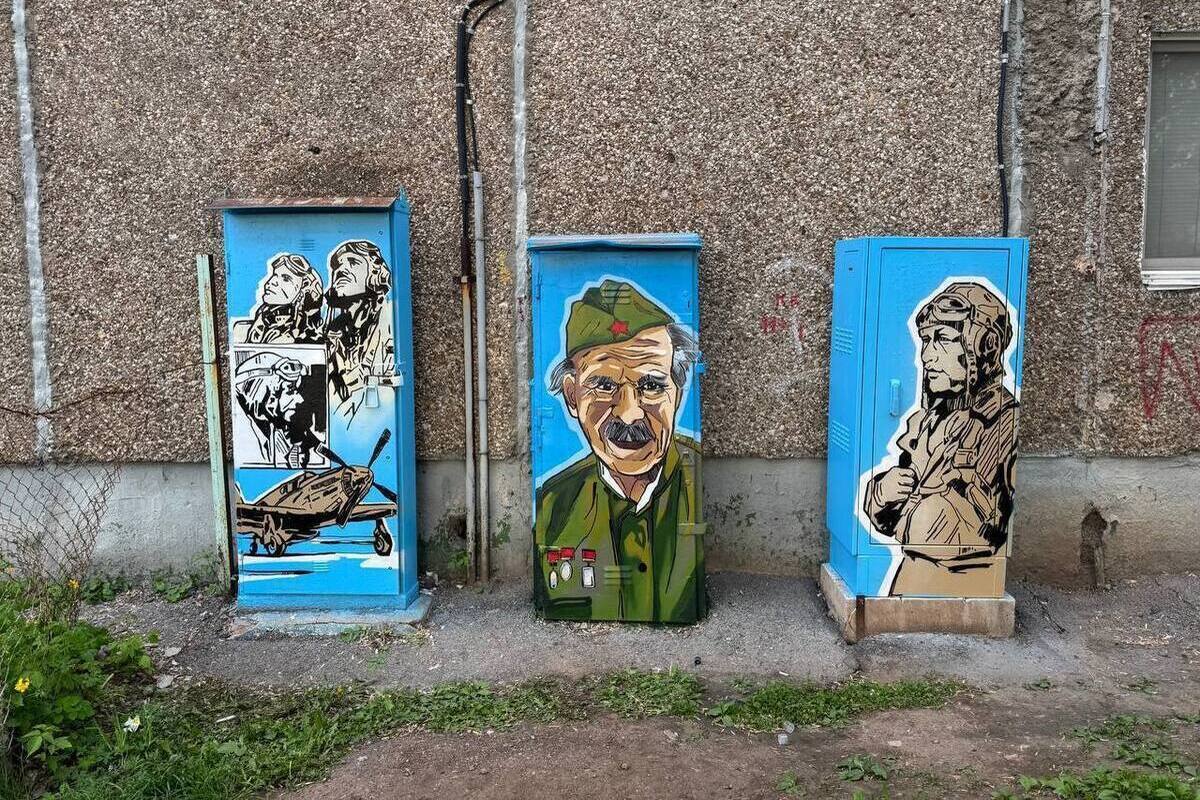 Так, телекоммуникационные шкафы в исторической части Уфы расписали уличные художники Виктор Ермоленко и Азамат «1234». Невзрачные металлические ящики превратились в настоящие арт-объекты, притягивающие взгляды и посвященные подвигам героев войны.