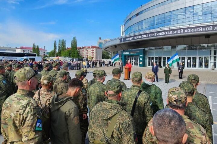 Сегодня, 12 мая, в столице Башкирии состоялась церемония отправки группы бойцов полка «Башкортостан» после краткосрочного отпуска в зону СВО. Напутственные слова воинам сказал зампремьер-министра правительства Ирек Сагитов.