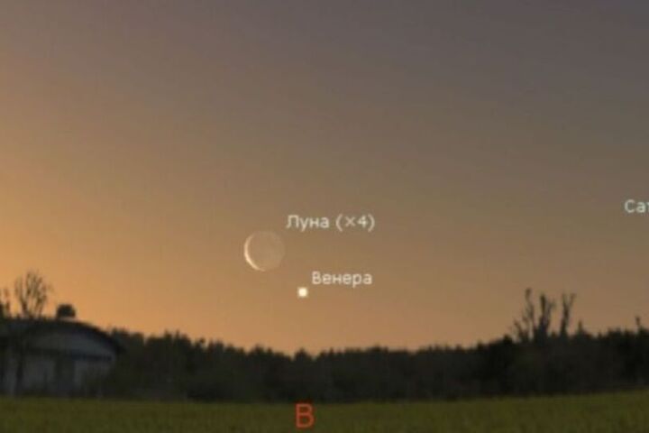 Луну и Венеру будет видно рядом друг с другом низко над горизонтом, а на востоке понаблюдать за ними можно будет на заре. Венера взойдет в 03:41 по уфимскому времени и расположится ниже и правее спутника Земли, которая находится в убывающем цикле.