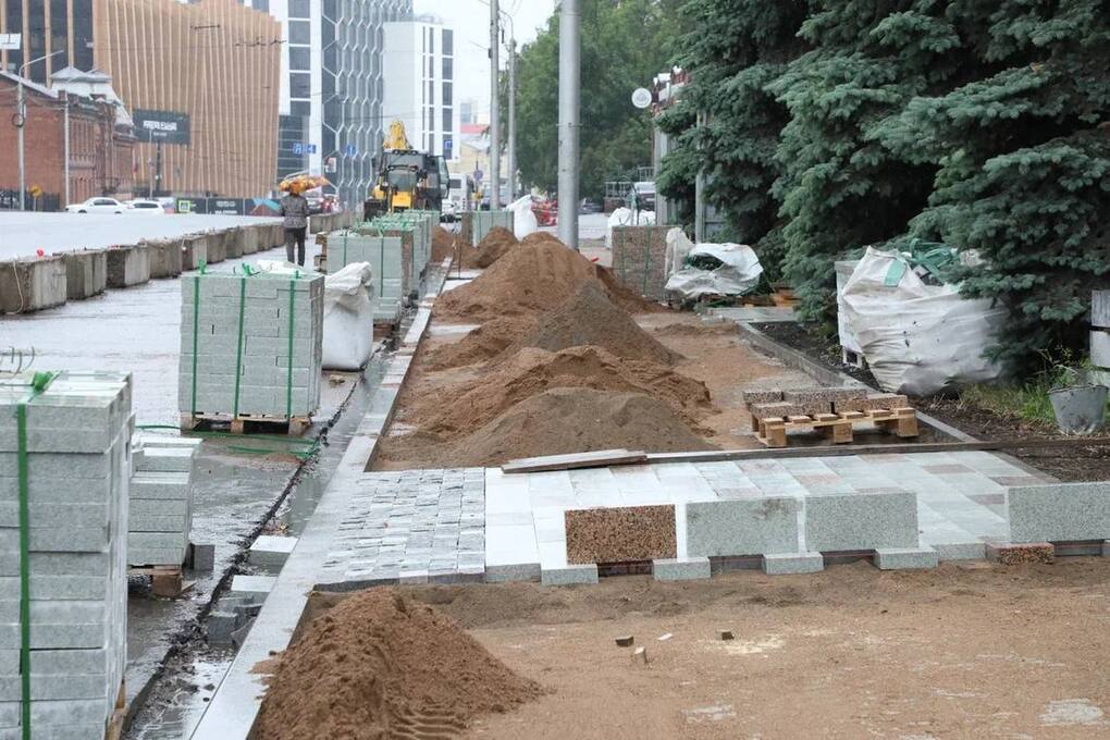 Так, он посетил улицу Чернышевского, где работы идут на нескольких участках. Рабочие расширяют пешеходные зоны, проводят озеленительные работы. Подрядчики уже демонтировали старую плитку и асфальт, устанавливают новые бордюры, укладывают гранитную плитку.