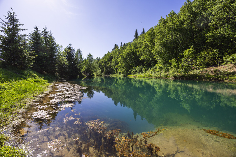 Родник Красный Ключ – самый мощный водный источник в России и второй по величине в мире. Два сообщающихся крупных карстовых озера с незамерзающей водой яркого бирюзового цвета через протоку изливаются в реку Уфу. Источник находится в одном из озер на глубине около 40 метров.