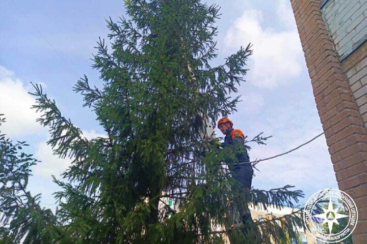 Кошке в Кумертау потребовалась помощь спасателей, после того, как животное залезла на высокое дерево.