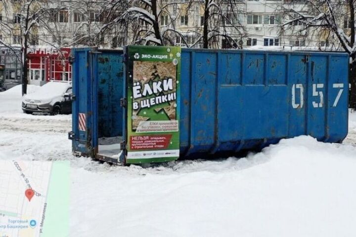 В столице Башкирии появился специальный контейнер для нераспроданных елок. Он является частью экологической акции «Елки в щепки».