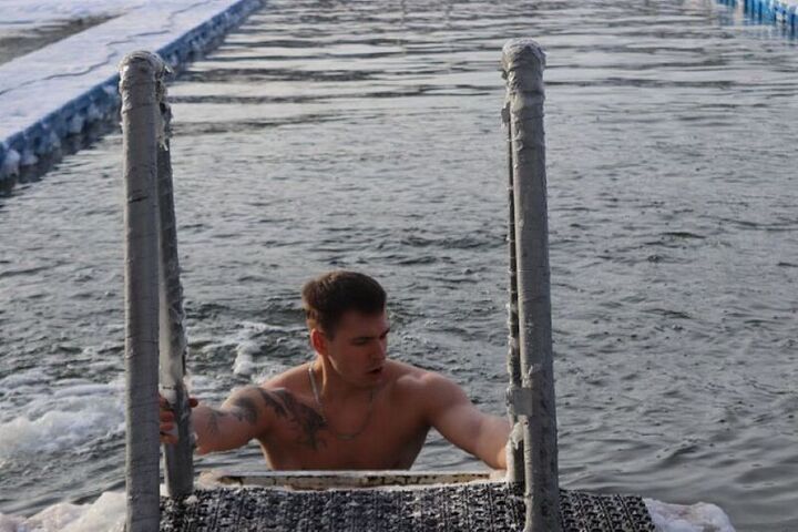 Сегодня, 7 января, в Уфе в парке Якутова состоялся рождественский праздник клуба моржей «Белые куницы».