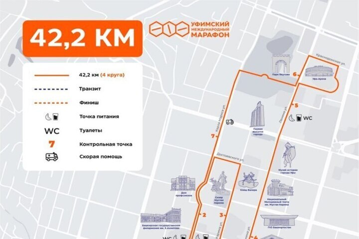 Во время подготовки и проведения мероприятия будет ограничено движение с 8:00 6 сентября до 24:00 7 сентября на участке улицы Заки Валиди от Карла Маркса до Советской. Также 7 сентября с 00:00 до 16:00 ограничат движение на участке улиц Карла Маркса и Тукаева вдоль стадиона «Динамо», с 5:00 до 15:30 перекроют улицы по маршруту от старта напротив стадиона «Динамо» и дальше, включая улицы: Советскую, Пушкина, Карла Маркса, Достоевского, Мустая Карима, Коммунистическую, Ленина, Краснодонскую, Гоголя, Гафури и Тукаева.